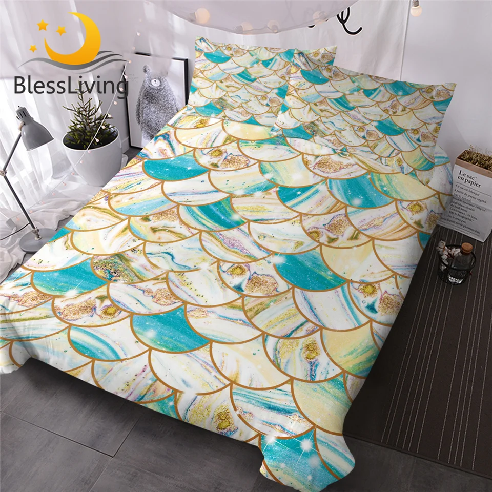 Роскошный постельный комплект с чешуйками, мраморным одеялом и золотым покрытием