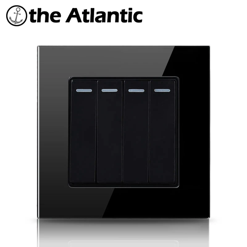 Настенный выключатель Atlectric, переключатель со стеклянной панелью, для 1, 2, 3, 4 клавиши, 1, 2 канала светильник кнопка включениявыключения