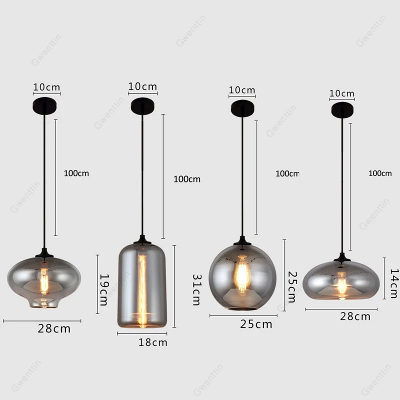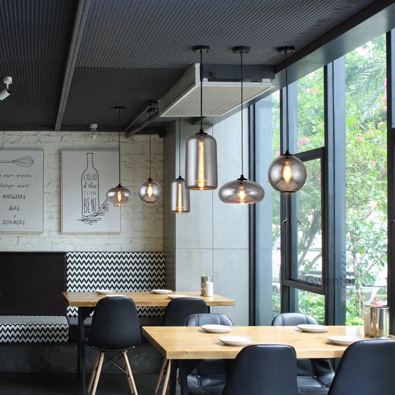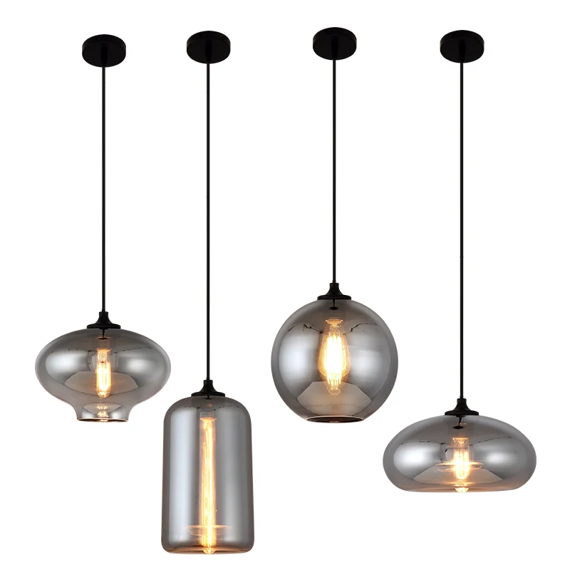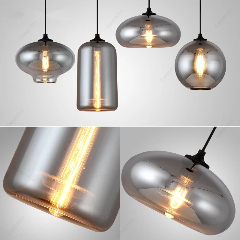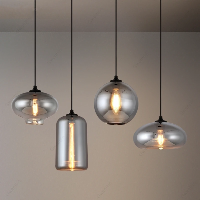 Скандинавский подвесной светильник из дымчатого серого стекла, современные светодиодные лампы для гостиной, кухни, домашний декор E27