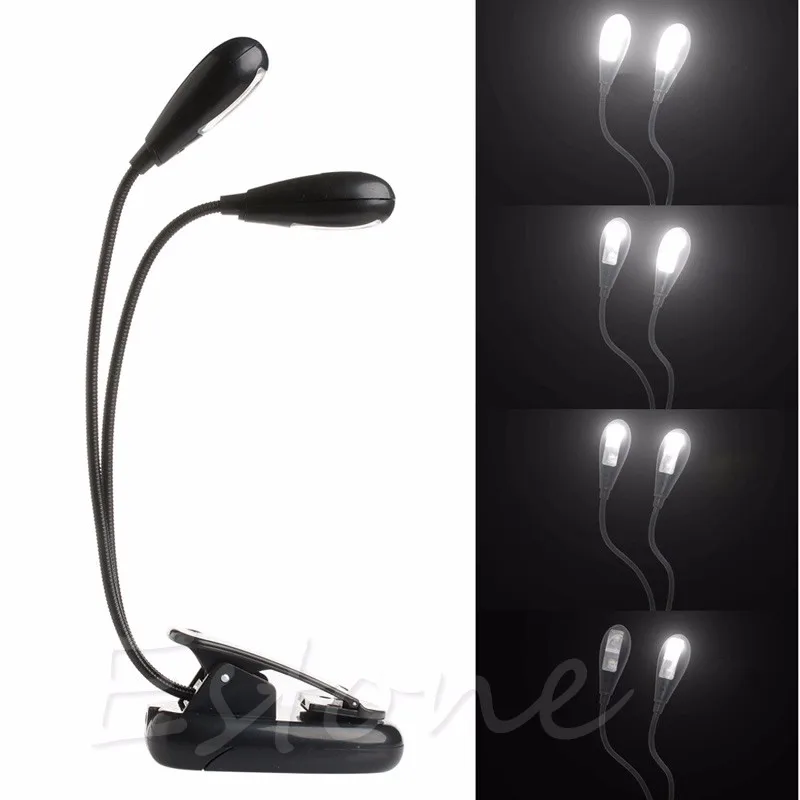 Гибкая 2 Dual Arms клип на 4 Светодиодный светильник для чтения книг, планшета лампа