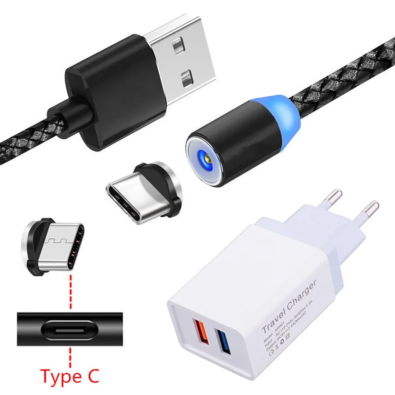 Магнитный зарядный кабель типа C для Samsung A50 A20 Xiaomi Mi A3 9 9T lite Redmi Note 7 8 8T Google Pixel 3a 3 XL, настенное зарядное устройство USB
