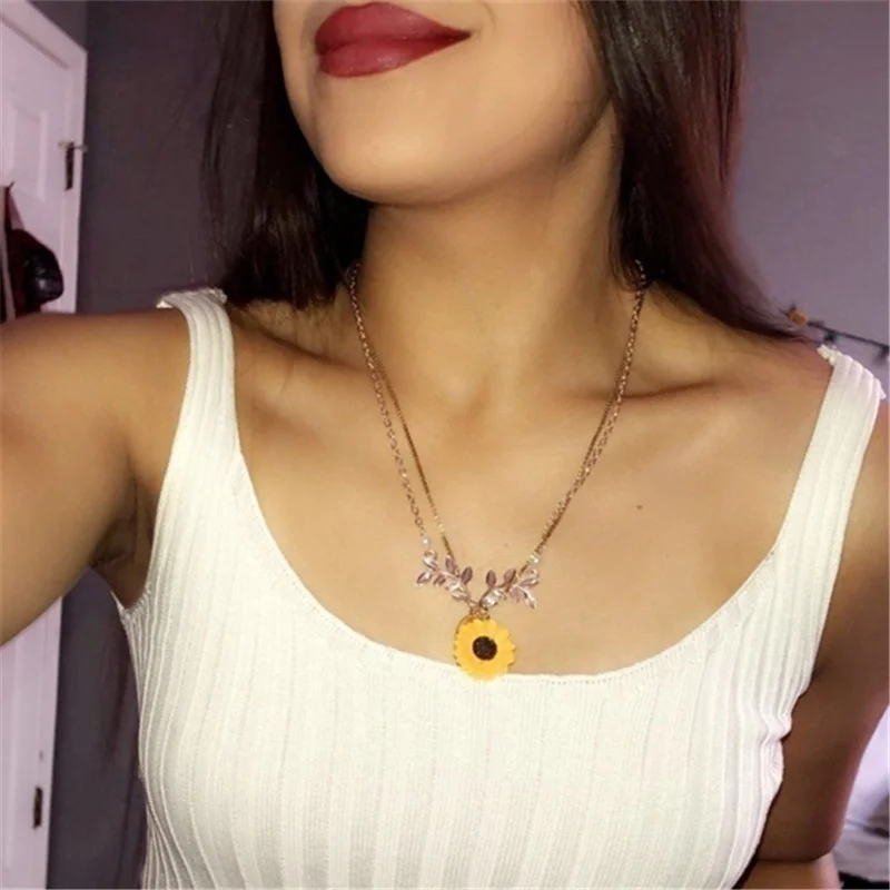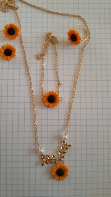 5 шт.компл., ожерелье, серьги, браслет, кольцо, набор для женщин, модные ювелирные изделия, аксессуары, Подсолнух, ювелирные изделия, подарки, подвеска, ожерелье