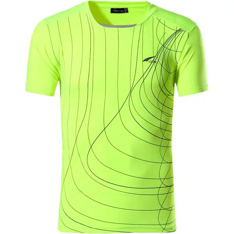 Мужская Спортивная Футболка Jeansian, футболка, футболка для бега, тренажерного зала, фитнеса, тренировок, футбола, короткая футболка, сухая посадка, LSL606, цвет зелено-желтый