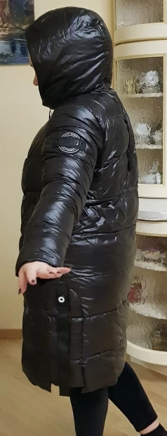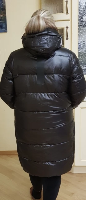Пуховик теплый, пошит качественно, запаха нет, нитки не торчат. Упакован очень хорошо. При распаковке начинает набирать сразу объём,Цвет–черный, блестит–в меру,ткань тоненькая смотрится со стороны хорошо, фасон–молодежный, два бегунка на молнии, карманы не застёгиваются, внутри с флисом, расположены по типу–кенгуру, рукава не широкие внутри на трикотажной резинке. Я покупкой очень довольна, продавца рекомендую.