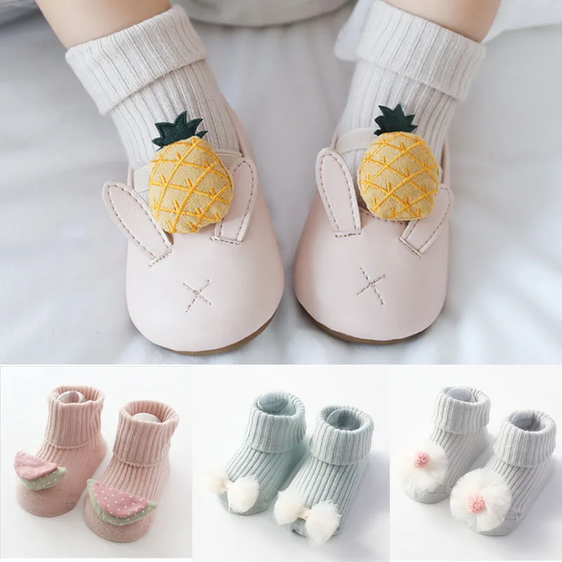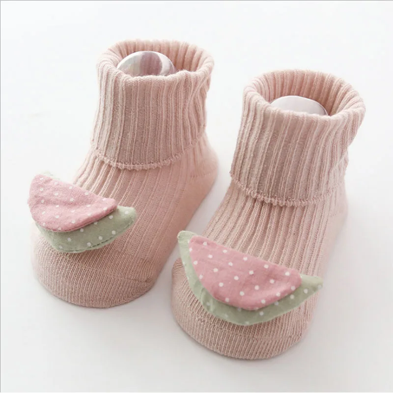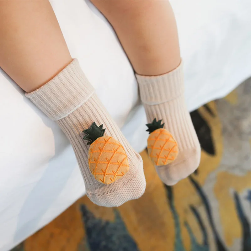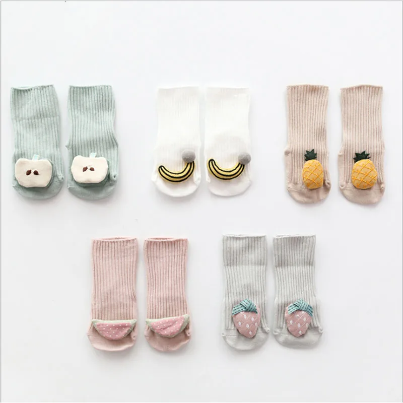 Хлопковые носки детские Нескользящие носки-тапочки с изображением фруктов из мультфильма для младенцев Детские носки для малышей на осень и весну, в наличии