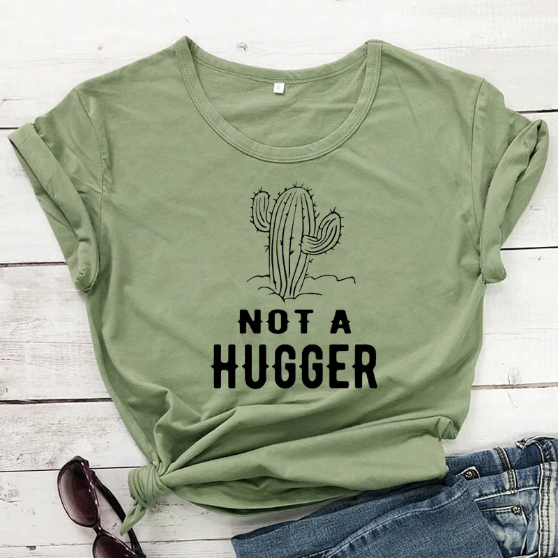 Футболка с надписью Not A Hugger, Повседневная стильная кавайная летняя хлопковая футболка, винтажная Эстетическая футболка, художественная футболка с цитатами