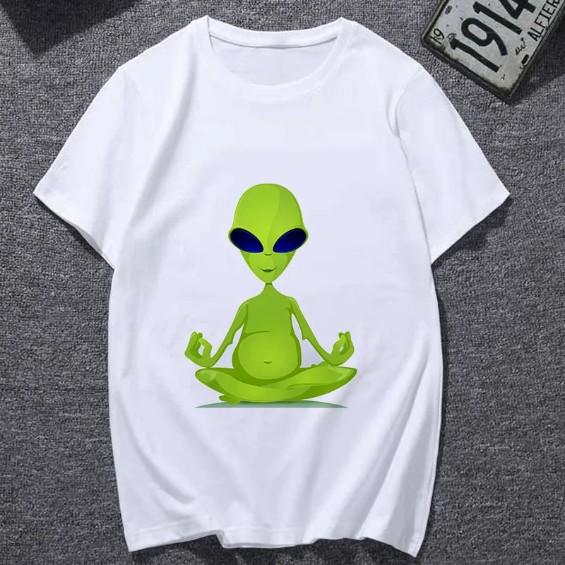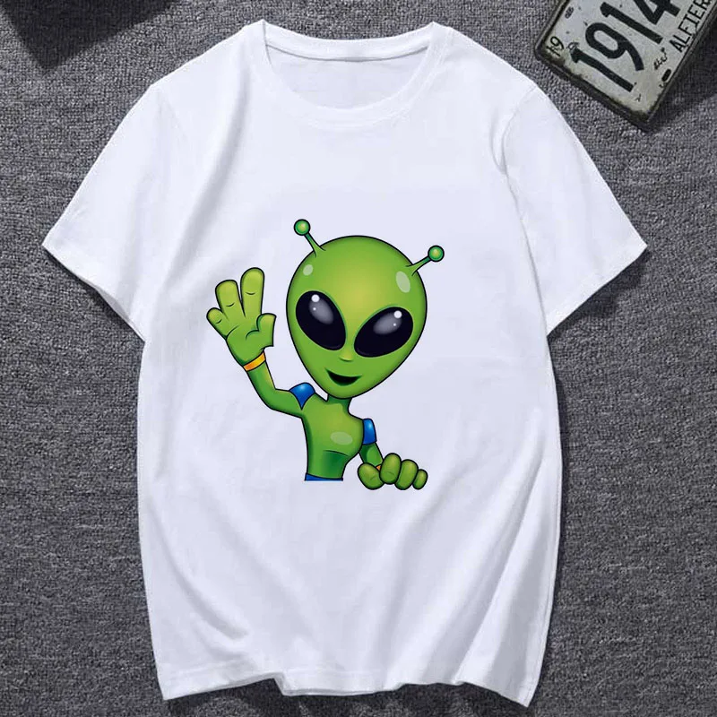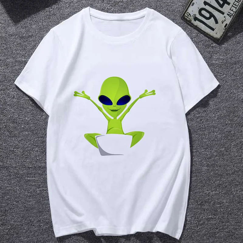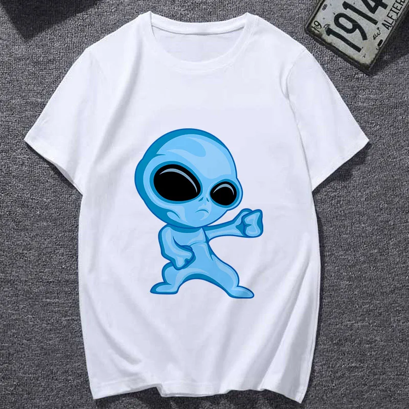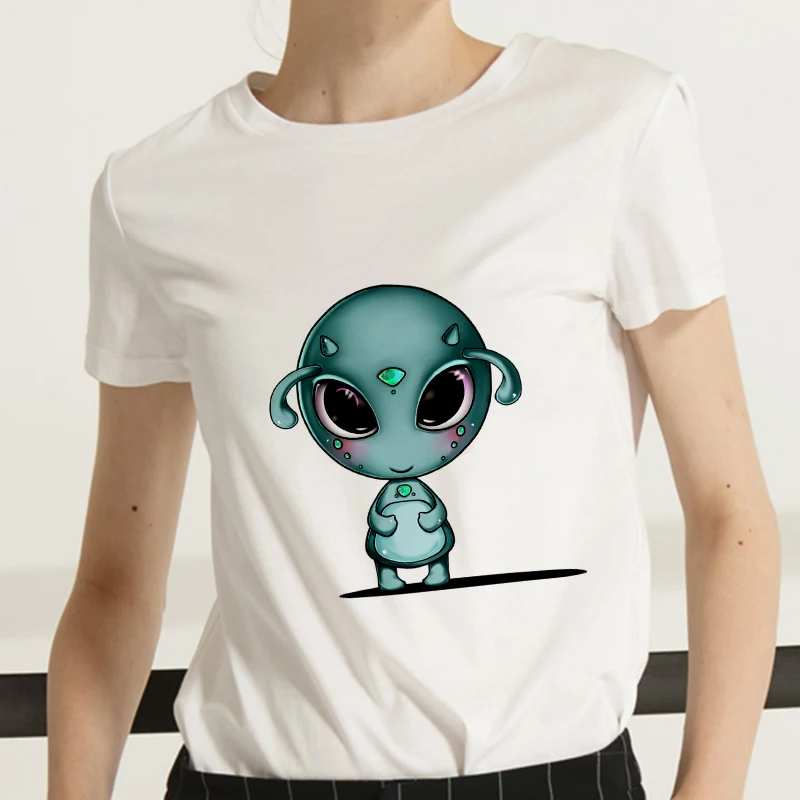 Футболка женская с забавным принтом инопланетян, тонкая Милая Модная рубашка в стиле Харадзюку, Топ в стиле kawaii, лето 2019