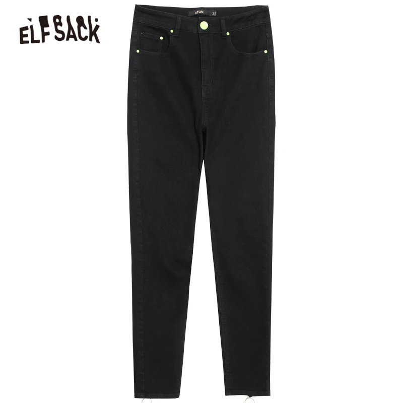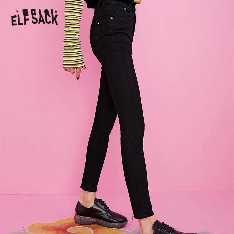 Женские облегающие джинсы ELFSACK, черные однотонные повседневные джинсы с контрастной молнией, базовые джинсы-бойфренды в Корейском стиле на осень, 2019