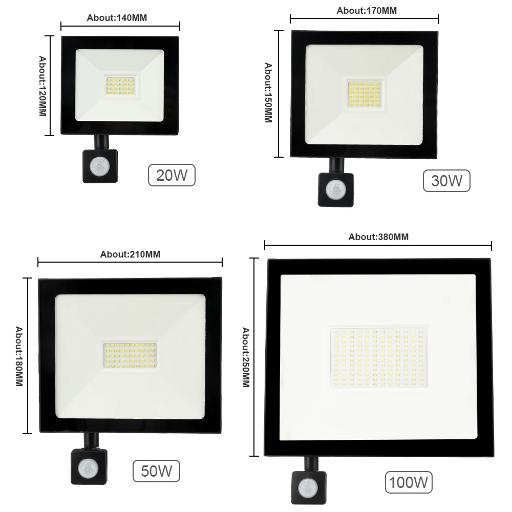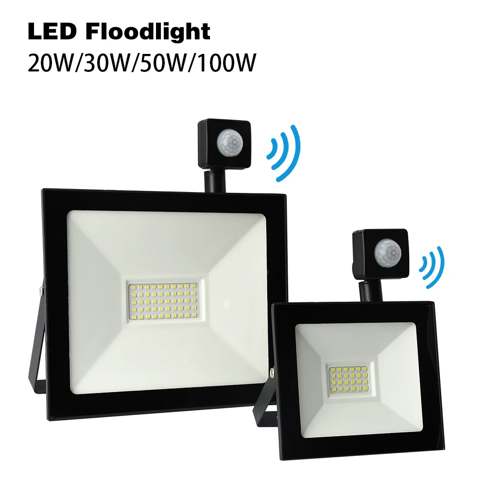 Светодиодный прожектор с датчиком движения, 30 Вт, 50 Вт, 100 Вт, 20 Вт, светодиодный уличный Точечный светильник 220 В, PIR Светодиодный прожектор, прожектор для сада