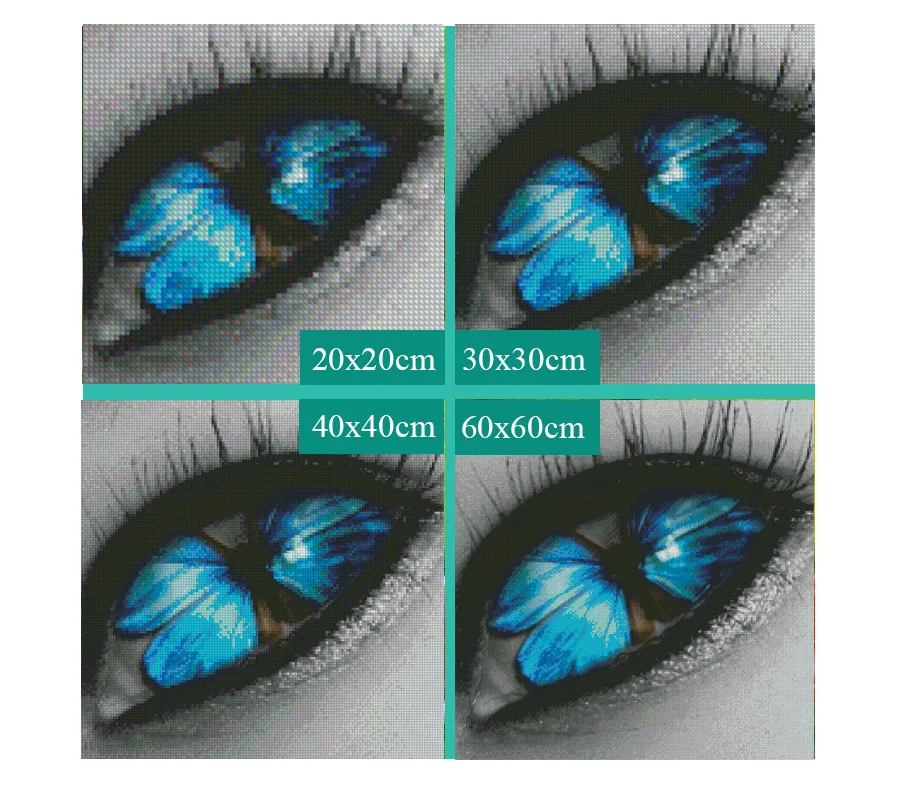 Обычно,Сложные красочные изображения с тонкими деталями требуют большего размера, чтобы выразить детали. И если вы хотите, чтобы общий взгляд на эффект каждого размера, следующее изображение только для справки. Вы также можете оставить нам сообщение, если вам нужен большой размер или у вас есть другие вопросы.