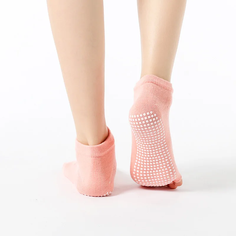 Женские хлопковые противоскользящие носки для йоги дышащие носки с пальцами с открытой спиной, из силикона для занятий спортом, пилатеса, для тренажерного зала, фитнеса, балета, танцев