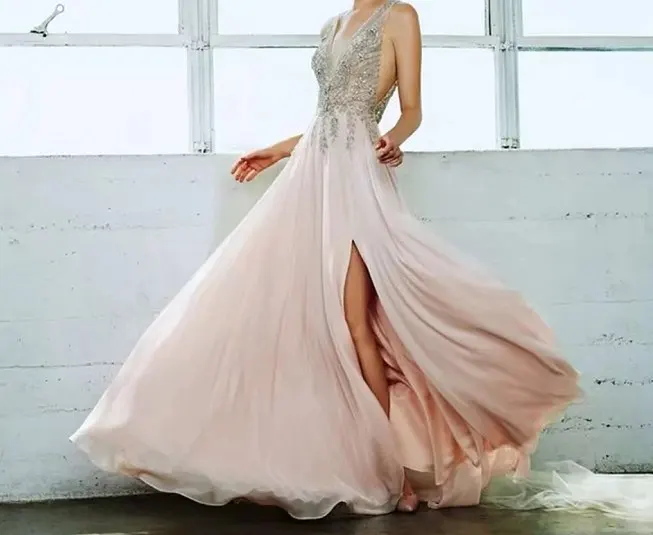 Розовые вечерние платья с разрезом спереди и кружевной аппликацией Bea...