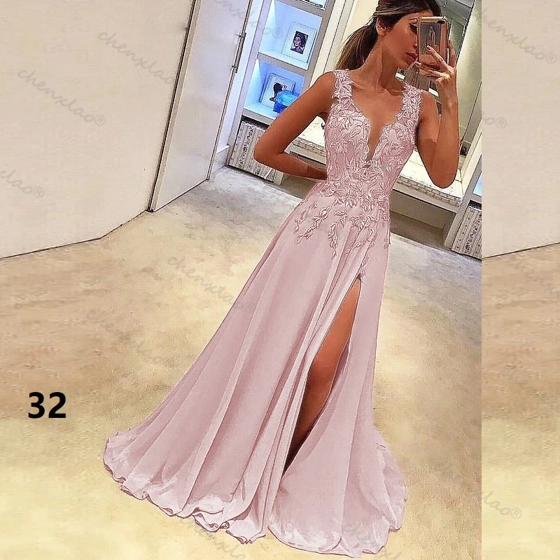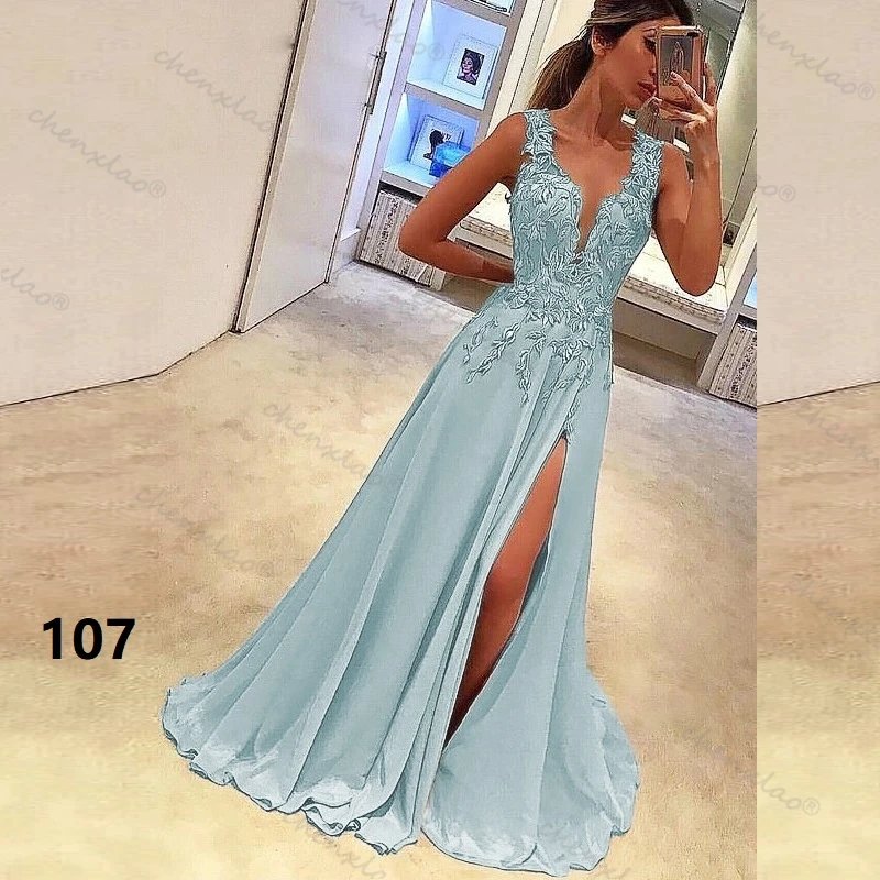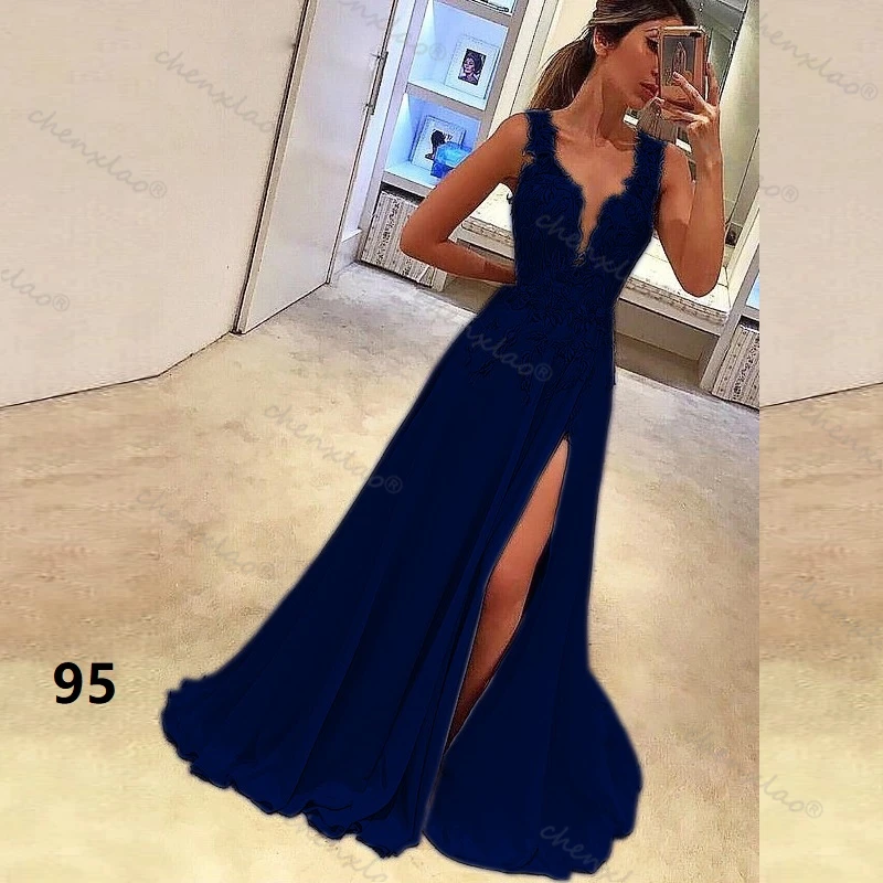 Женское атласное платье-трапеция Шампань, вечернее платье до пола, с V-образным вырезом и аппликацией, с высоким разрезом, без рукавов, для выпускного вечера