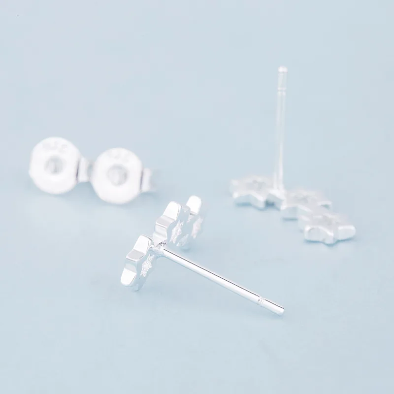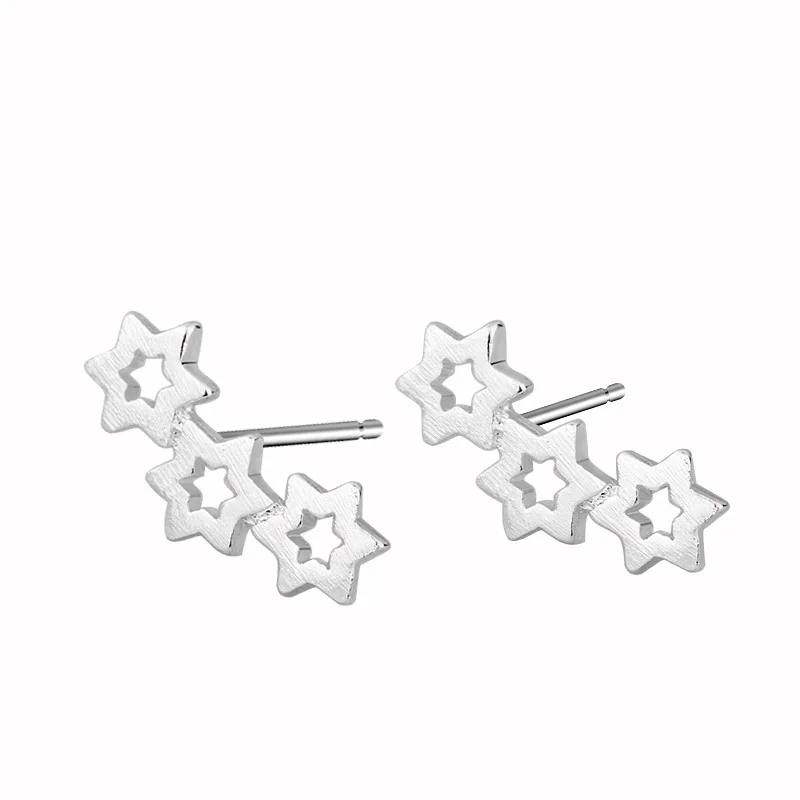 Серьги-гвоздики серебряного цвета в Корейском стиле с 3 звездами