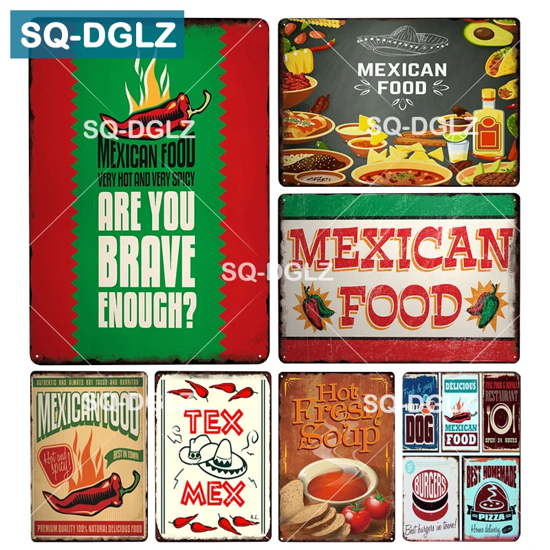SQ-DGLZ мексиканская еда, металлический знак, Настенный декор, жестяной знак, винтажный домашний декор, картина, таблички, художественная доска, плакат