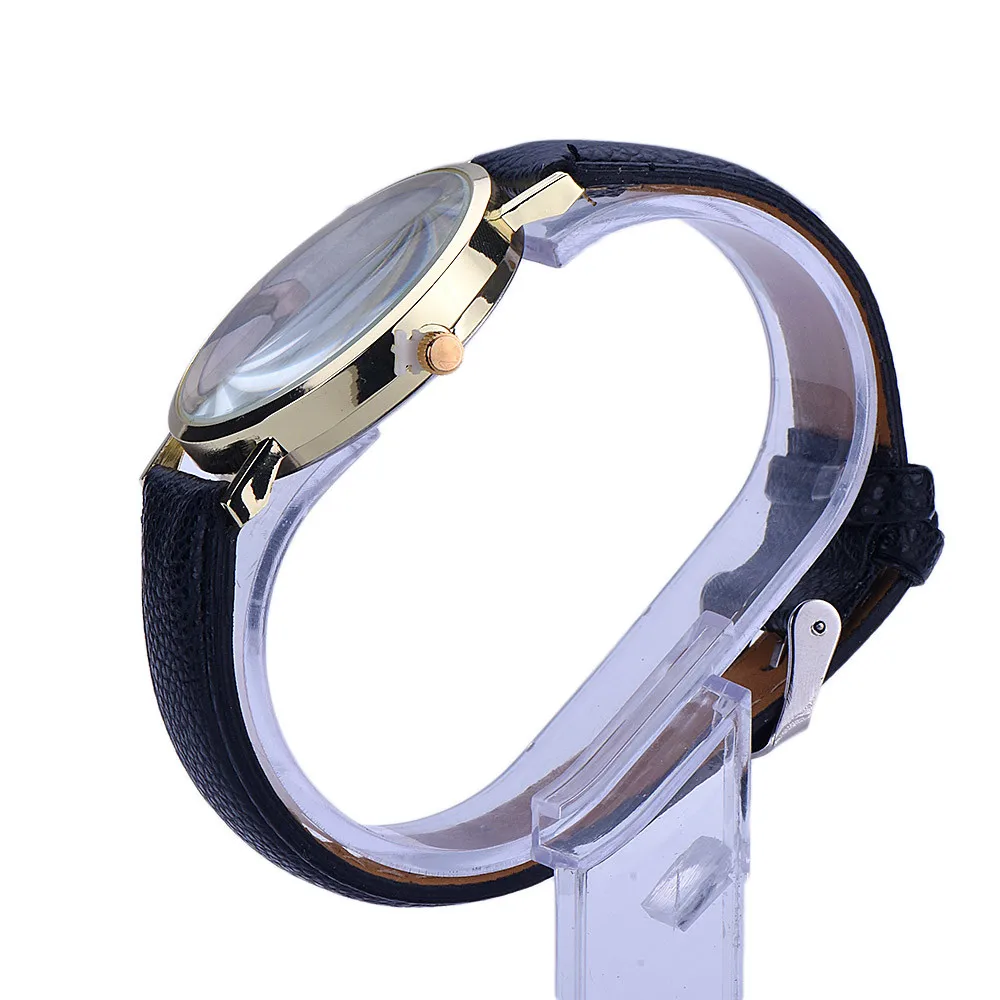 Классический вид, эти Модные Аналоговые кварцевые наручные часы специально разработаны с металлическим корпусом и ремешком из искусственной кожи