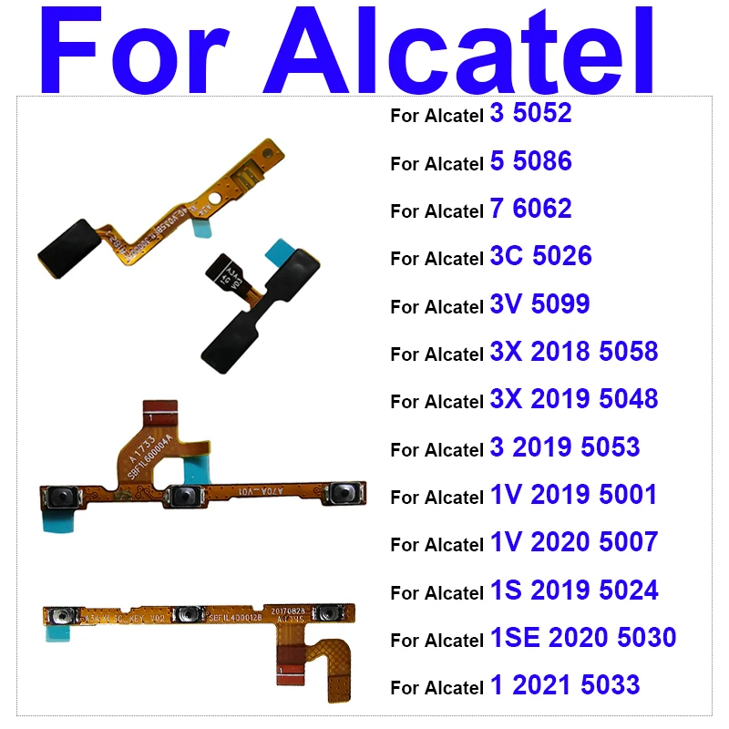 Гибкий кабель питания и громкости кабель для Alcatel 3 5052 5052D 3 2019 5053 5053K/A/Y/D 5 5086 5086A/Y/D 7 6062 OT 6062 6062W 3C 5026 OT5026 5026A/D 3V 5099 5099D/A 3X 5058 5058A/I/J 1V 5001 2019 5001D/A 1V 2020 5007 5007U/G/A 1S 2019 5024 5024D/Y/K 1SE 2020 5030 5030F/U 1 5033 5033D/X/Y/A/J Repalcemnet части