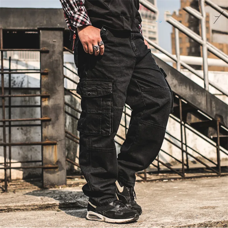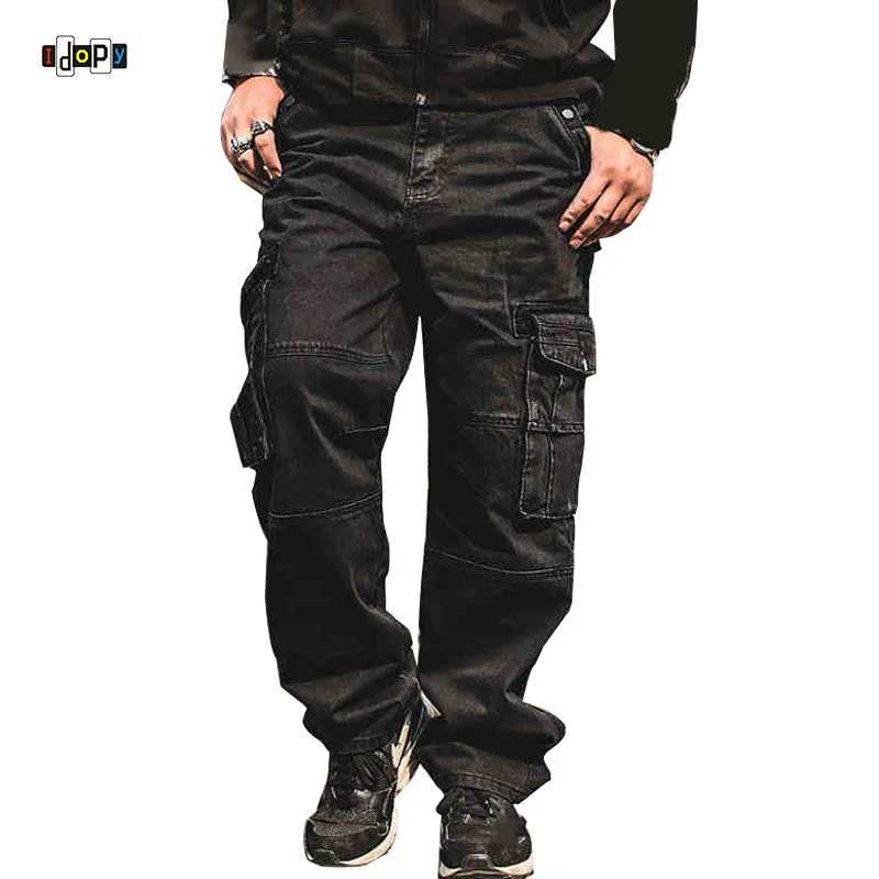 Джинсы-карго мужские Idopy, свободные, с несколькими карманами, в стиле панк, хип-хоп, мешковатые, размера плюс, 30-46