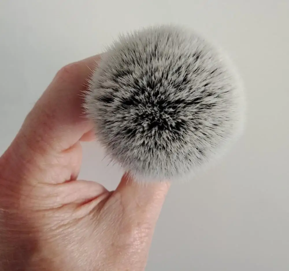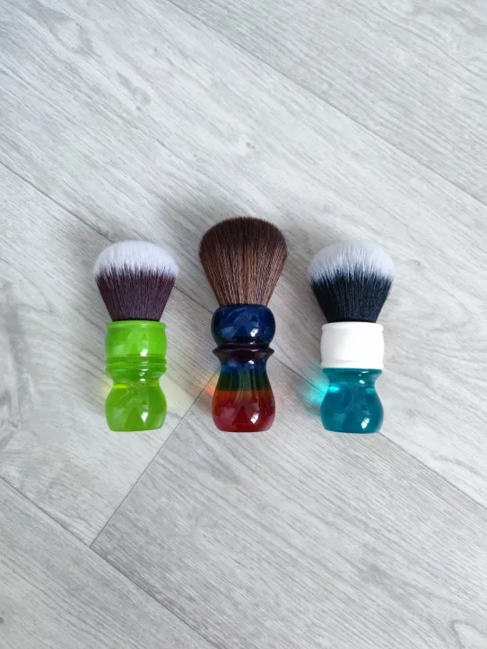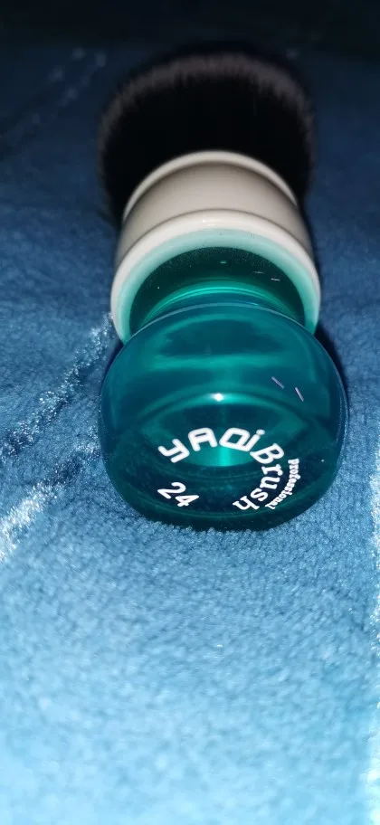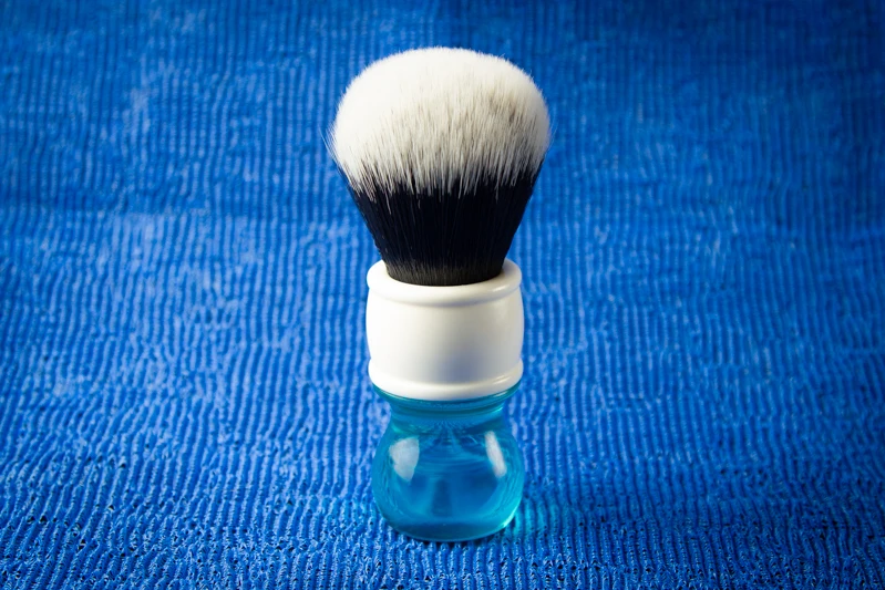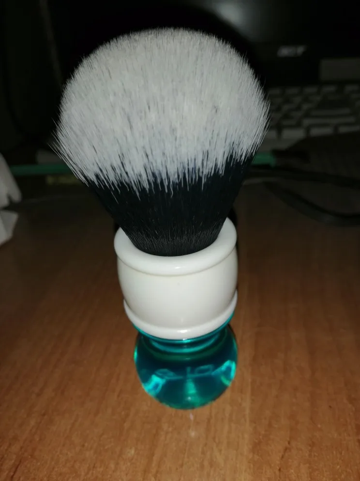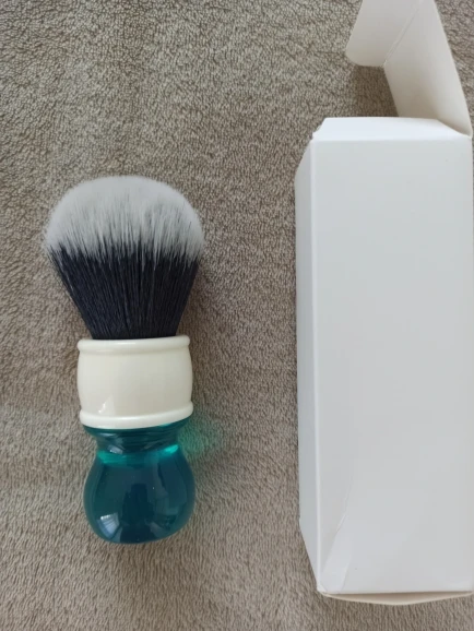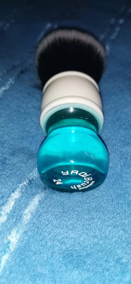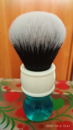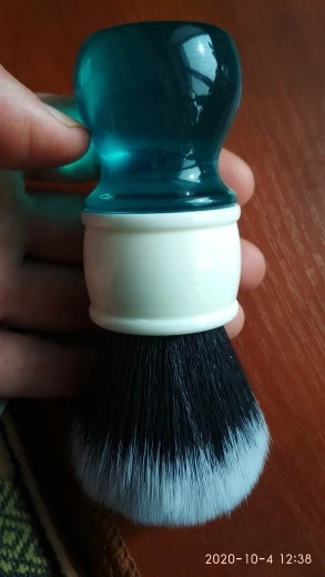 Потрясающая расцветка этой кисти-смокинга цвета морской волны. Ручка имеет традиционную форму и приятна на ощупь с хорошим весом. Узел-это смокинг диаметром 24 мм, который, кажется, очень популярен в последнее время, и является хорошим украшением синего цвета. Очень привлекательный. Что касается производительности-кисть гладкая на лице и достаточно плотная, с достаточным костяком, чтобы взбивать пену, используя любой метод, который вы предпочитаете. Отличное качество.