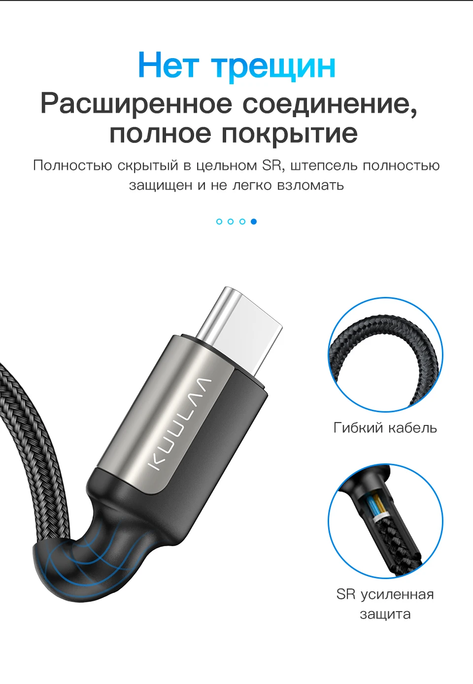Отличный кабель. Намертво вставляется в разъём. Заказывал с экспресс доставкой, пришёл за 5 дней службой 5post (пятёрочка). Единственное, из за этого в наличии не было синего цвета. Продавец очень общительный, написал мне об этом и предложил заказать чёрный, на что я согласился. Если хотите 2х метровый кабель, то советую покупать здесь, ибо в других местах у них бешеные цены.