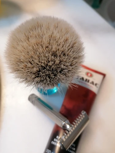 Отличная кисть, чтобы начать влажное бритье! Эта кисть, изготовленная из двухполосных барсуковых волос, Предпочтительная щетина для создания богатой пены, является удивительной ценностью!