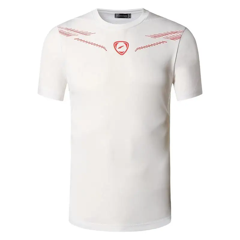 Jeansian Мужская Спортивная Футболка Для Бега Спортзала фитнеса тренировки футбол с коротким рукавом сухой Fit LSL070 белый
