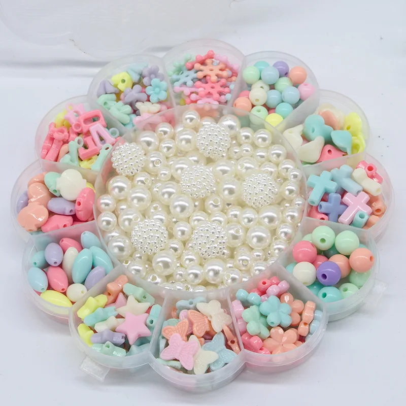 Набор акриловых бусин для рукоделия с пластиковой коробкой, набор ювелирных бусин ручной работы, колье, браслет, развивающая игрушка для детей