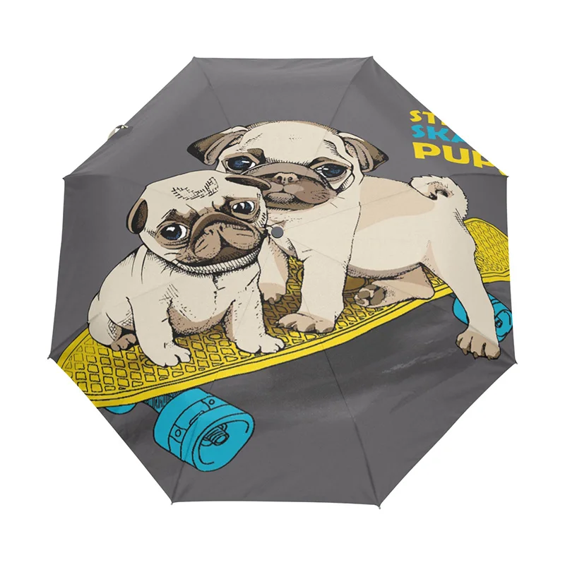 Зонт для уличного скейта, щенков, автоматические компактные зонты для путешествий с открытием и закрытием, легкий складной зонт для мопса, собак, женщин