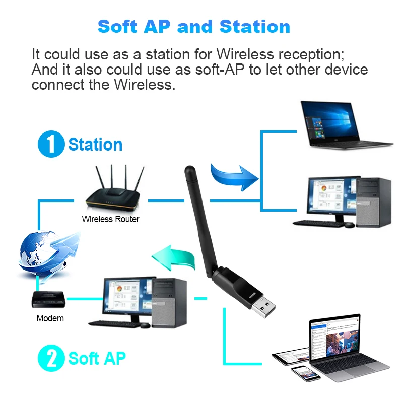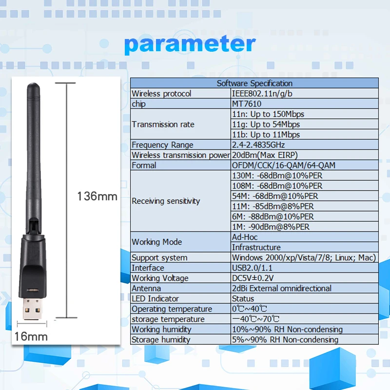 MT7610 USB Wifi антенна адаптер 150 Мбитс 2dBi Wifi антенна адаптер беспроводная сетевая карта для настольного ноутбука ТВ коробка Прямая поставка