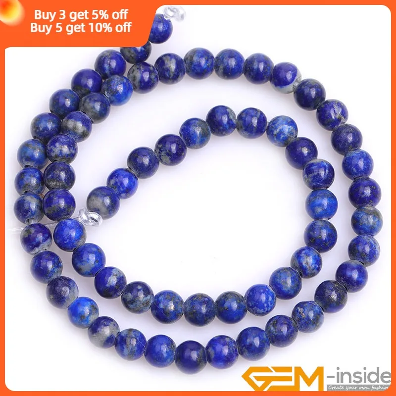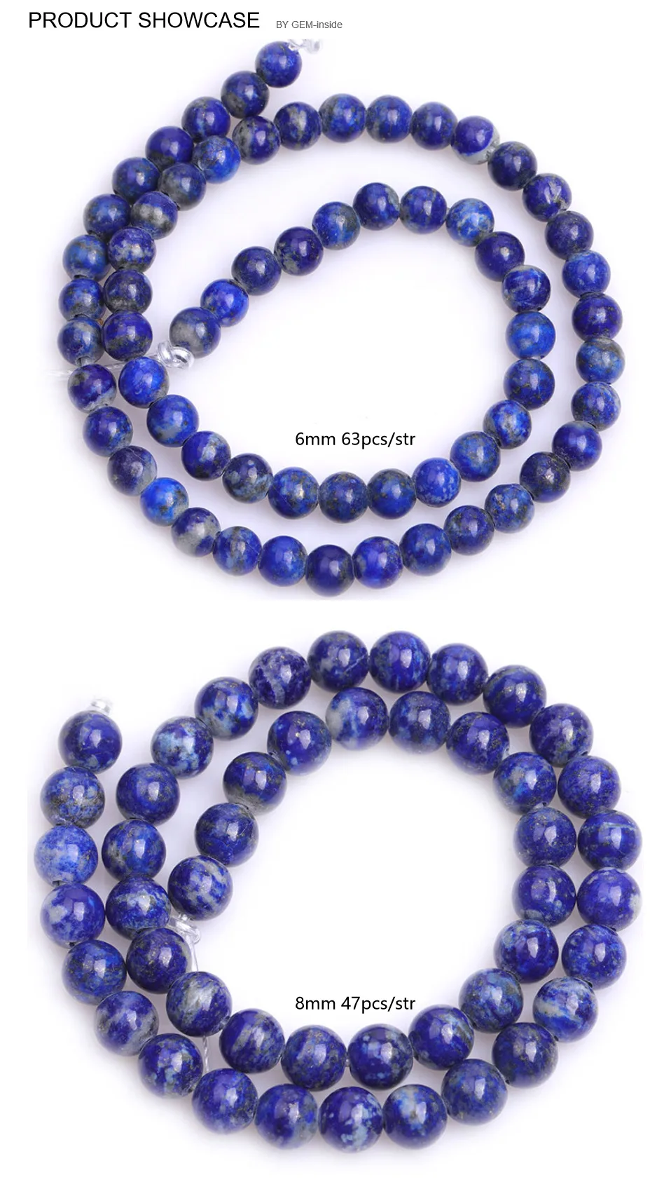 Бусина из натурального лазурита с большим отверстием, круглые бусины 2 мм для изготовления ювелирных изделий, нитка 15 дюймов, для браслетов, ожерелий сделай сам, россыпью, 6 мм, 8 мм