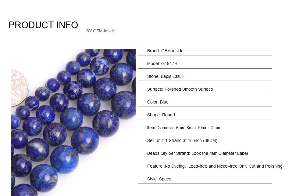 Страна: FR Color: Blue Lapis Lazuli Item Diameter: 8mm (47pcs per str) Доставка: Standard Shipping 16.11.2022