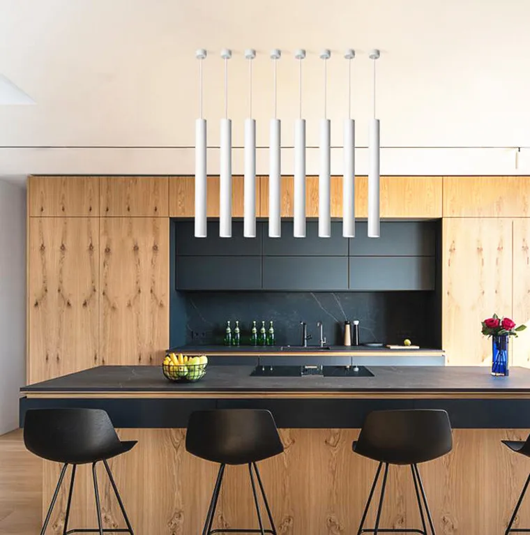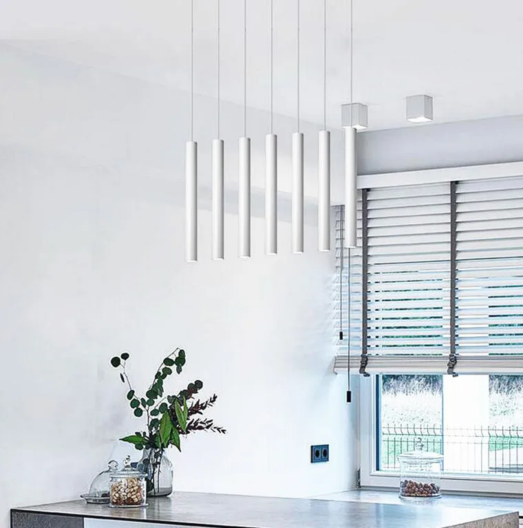 Цилиндрические светодиодные подвесные светильники с регулируемой яркостью, длинные трубчатые светильники, украшение для столовой, магазина, бара, подвесной светильник, фоновое настенное освещение