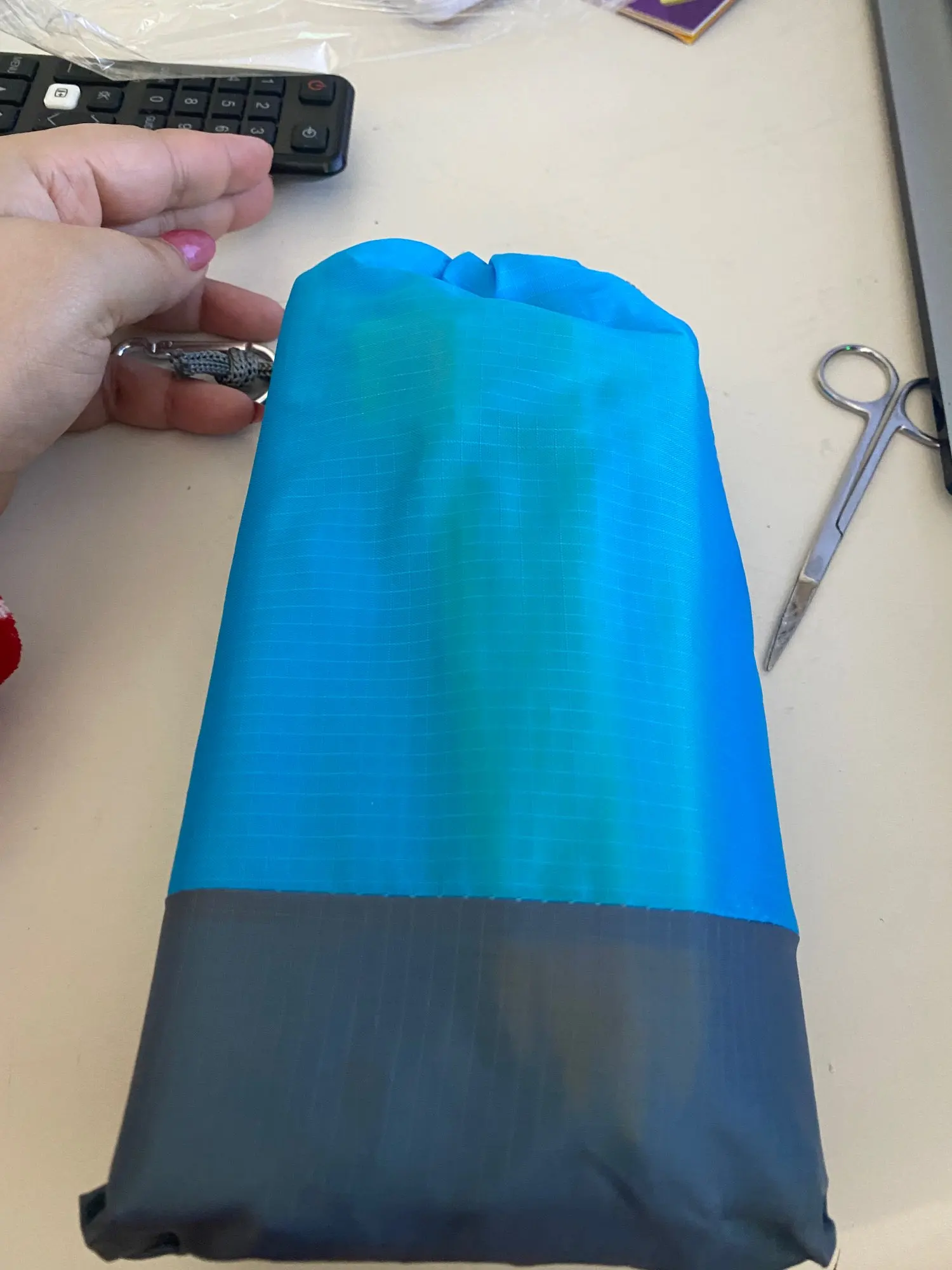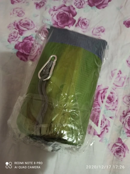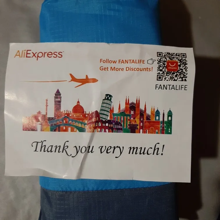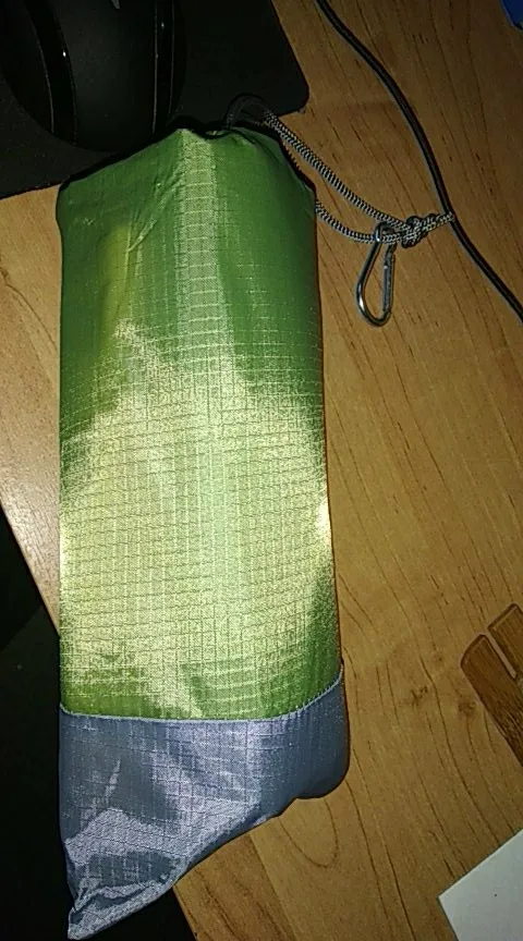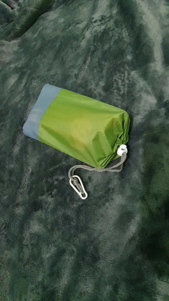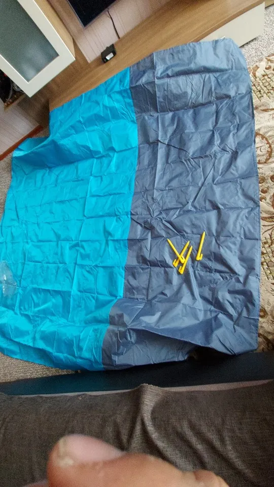 товар пришел совершенно с другим треком, который нигде на алиэкспрессе не отображался. но дошел. качество как ожидал. тонкая плотная синтетическая ткань. хороший чехол с алюминиевым карабином и фиксаторы к земле. На лето будет отличная подстилка. рекомендую.