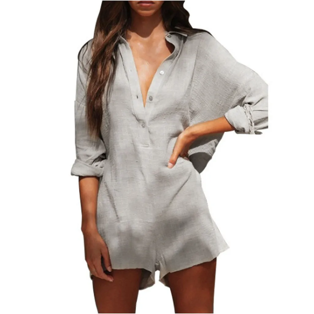 Женская Повседневная Свободная рубашка с длинным рукавом и шорты, комбинезон