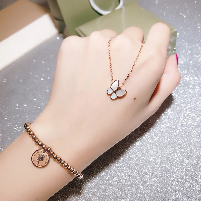 Юн РУО розовое оболочка золотого цвета кулон в форме бабочки из титановой стали ювелирные изделия женские подарок на день рождения никогда не выцветает; Прямая поставка