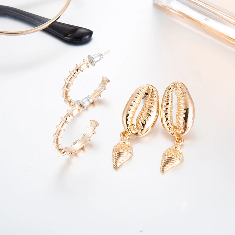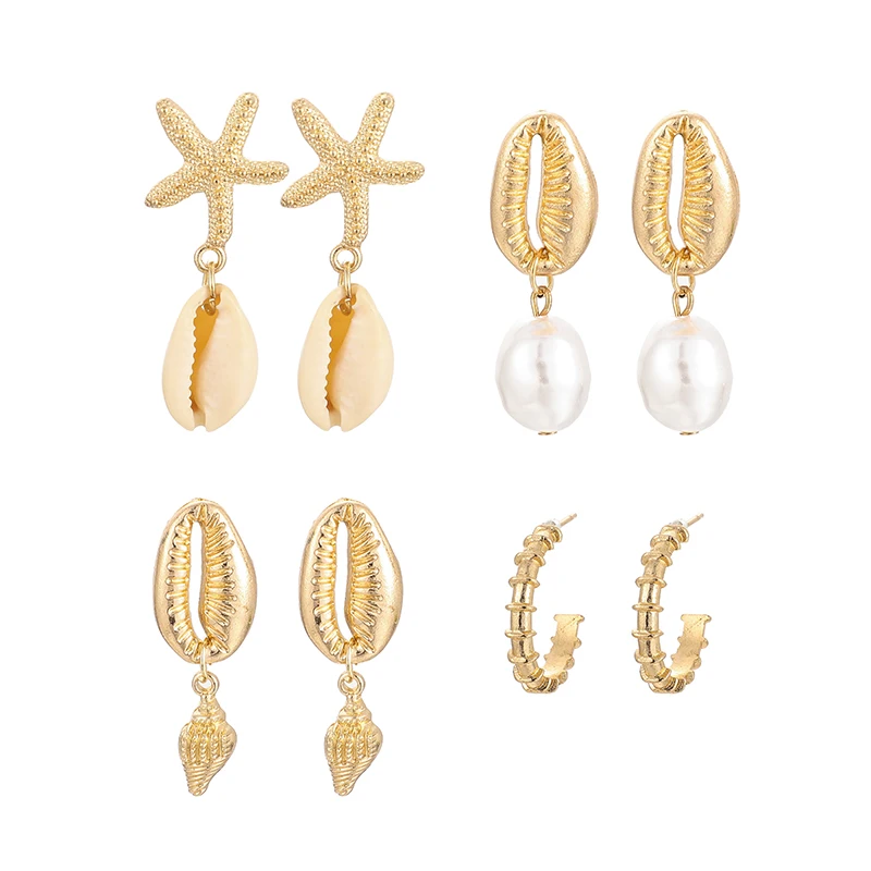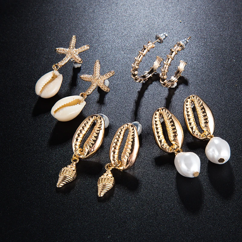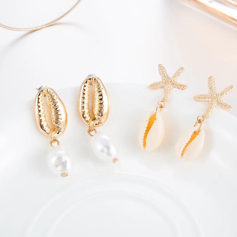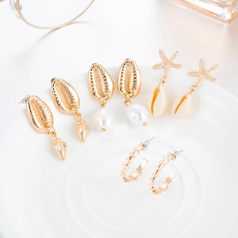 Женские серьги в стиле бохо docona, 4 пары1 комплект, серьги-подвески в форме морской звезды с золотой раковиной, ювелирные изделия, F02101