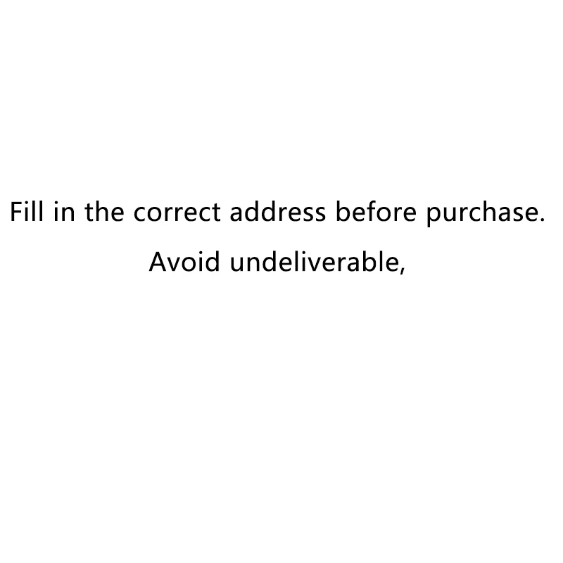 1. Пожалуйста, проверьте, является ли ваш адрес доставки полным и правильным перед оплатой, что повлияет на нормальную доставку вашей посылки.