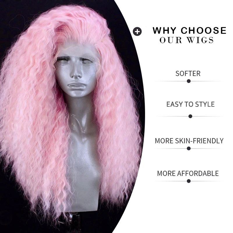 Харизма розовый парик синтетический парик фронта шнурка Длинные вьющиеся афро парики высокотемпературные волосы волокна парики шнурка для женщин Косплей