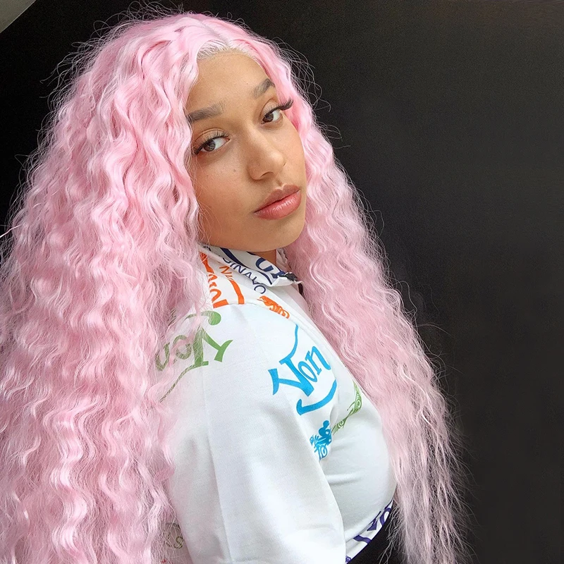 Харизматичный розовый парик, длинные вьющиеся афро-парики, синтетический парик на шнурке спереди, термостойкие волосы из термостойкого волокна, парики на шнурке для женщин