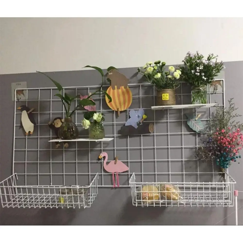 Новое настенное украшение, железная рама, подвесная стойка, настенный ящик для хранения, многофункциональная сетчатая металлическая настенная полка, подвесная полка