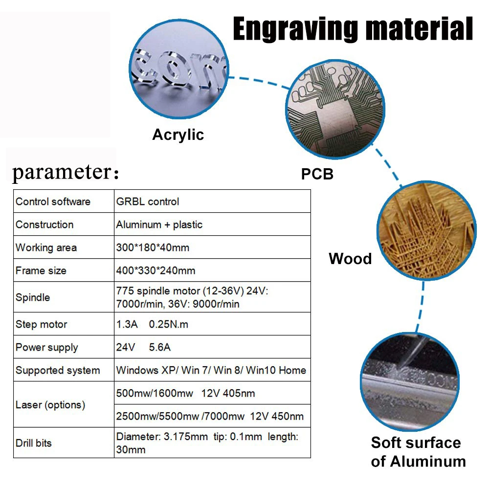 Лазерный гравер GRBL ER11, деревообрабатывающий станок с ЧПУ 3018 Pro для древесины, ПХД, ПВХ с автономным управлением