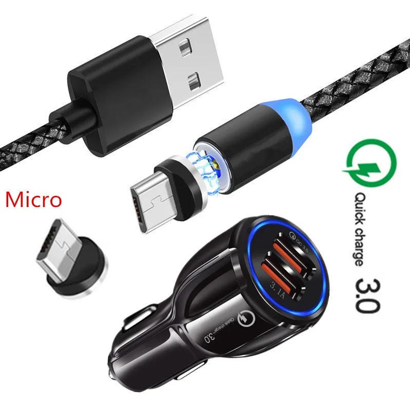 Магнитное автомобильное зарядное устройство с Micro USB-кабелем для Samsung galaxy A01, J3 2016, J5, J6, J8, J7 Pro 2017, Honor 7A, 7C, 8X, 8A, QC 3,0