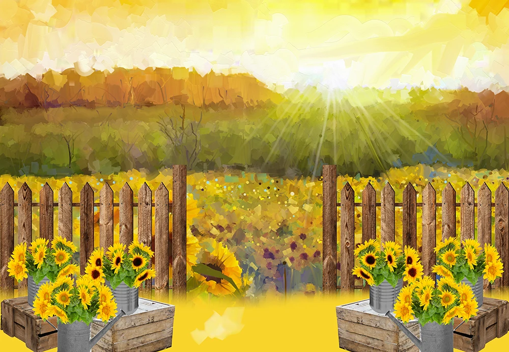 Картина маслом Осень фон с изображением природных пейзажей, красивое платье с подсолнухами и SunlightPhoto фон для фотостудии W-2273