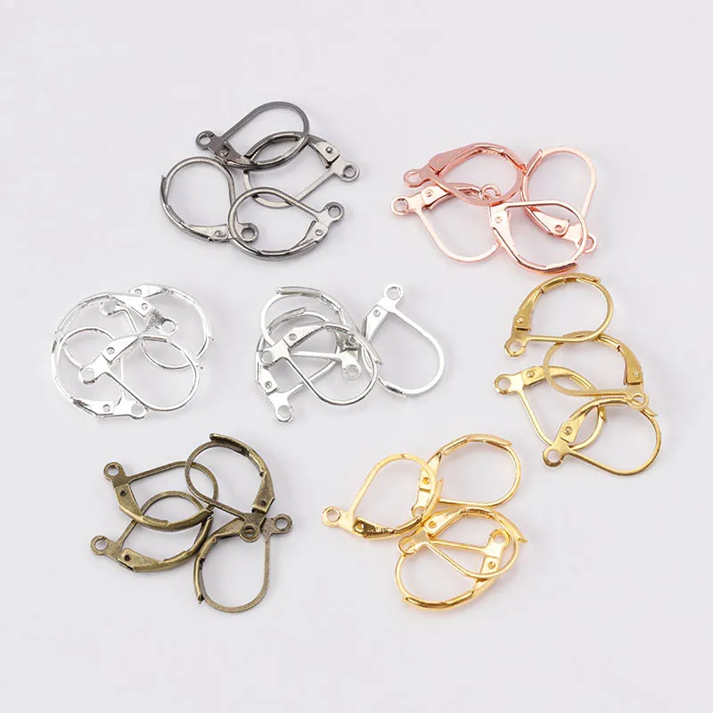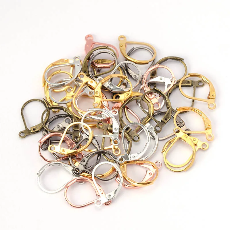 Новинка, 50 шт.лот, 15x10 мм, серебро, золото, Французский рычаг, крючки для сережек, проволочные настройки, база, обручи, серьги для изготовления ювелирных изделий DIY, оптовая продажа