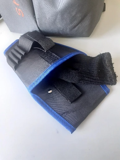 маленький шуруповёрт сидит не очень плотно, если не фиксировать липучкой боюсь выподет, есть 4 кармашка для насадок или сверел, и 5ще один фиксатор, не понятно для чего, с резинкой и лепучкой. На вид кобура очень ненадёжная, мягкая как тряпочка. Но наверное, по цене и товар. Дам напарнику поработать, сам буду использовать кобуру "матрикс"
