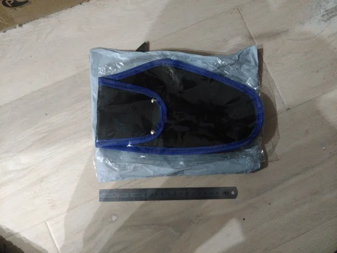 Чехол приехал в Москву за 2 недели. Качество материала не очень, сколько стоит на столько и выглядит. Шуруповерт средних размеров помещается.