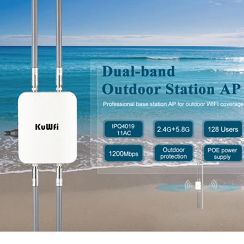 KuWFi 1200 Мбит/с гигабитный POE беспроводной Открытый AP маршрутизатор 802.11AC двухдиапазонный Wifi точка доступа AP 4*8 dBi антенна WiFi крышка базовая станция открытый высокой мощности WiFi покрытие AP маршрутизатор