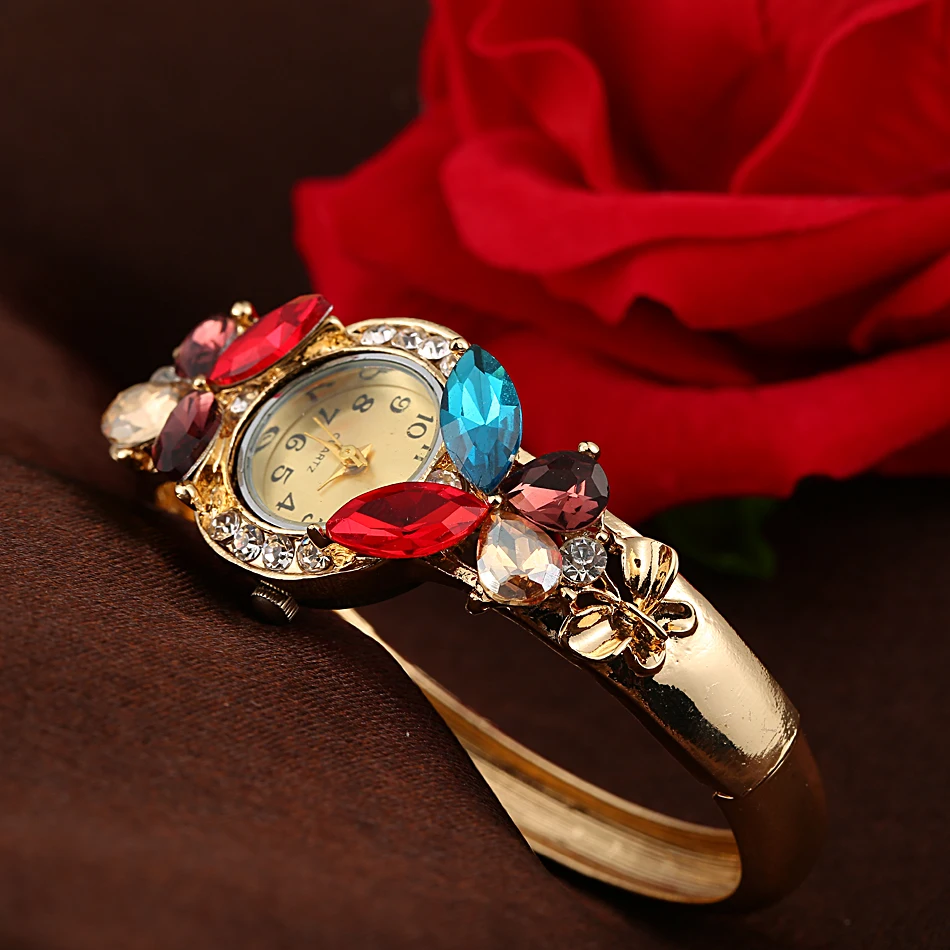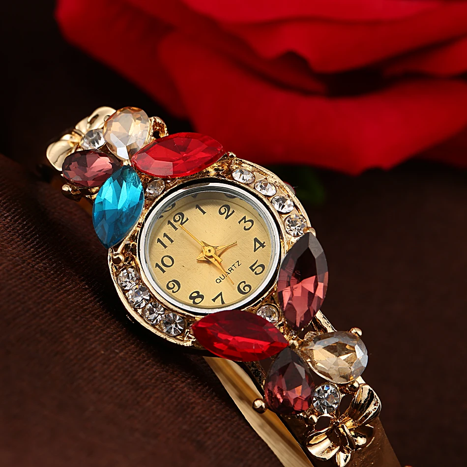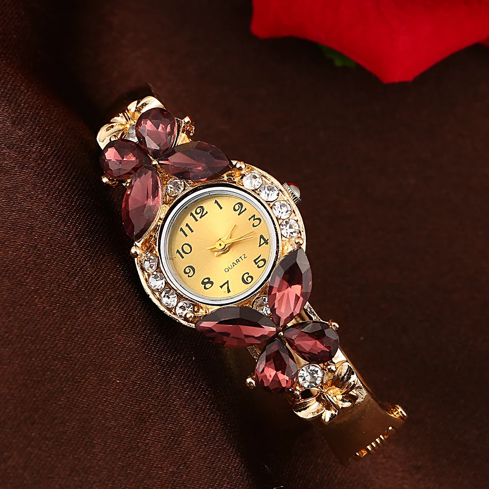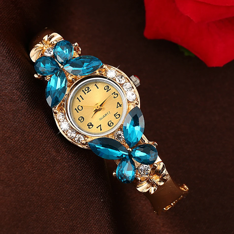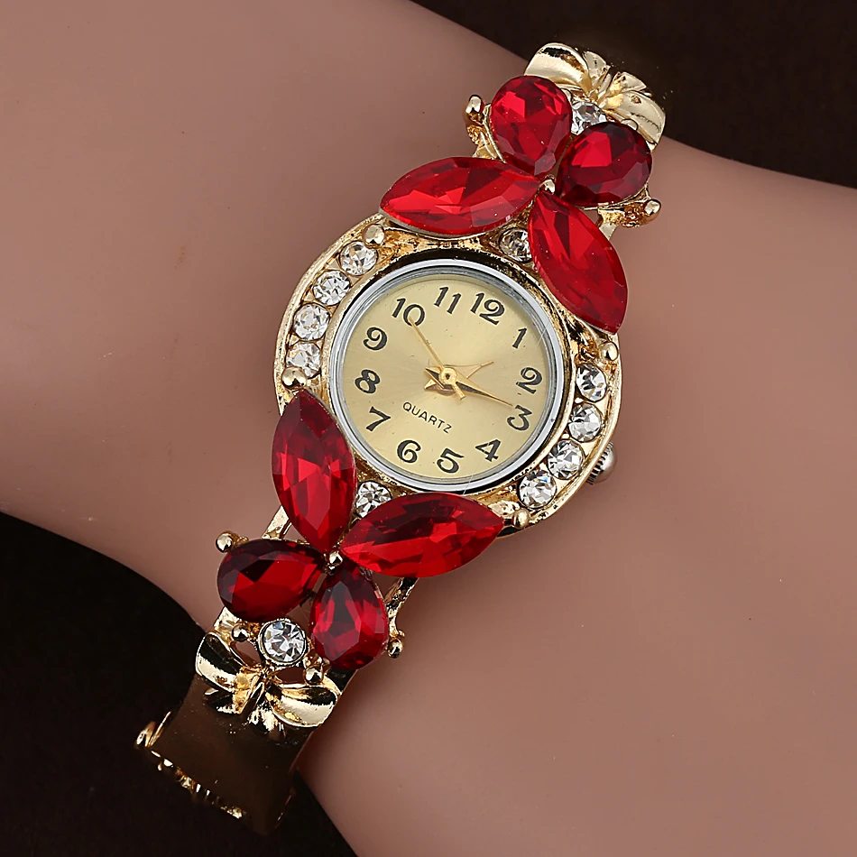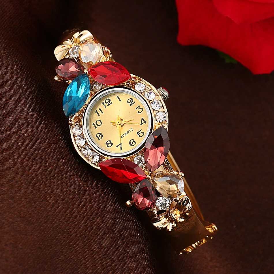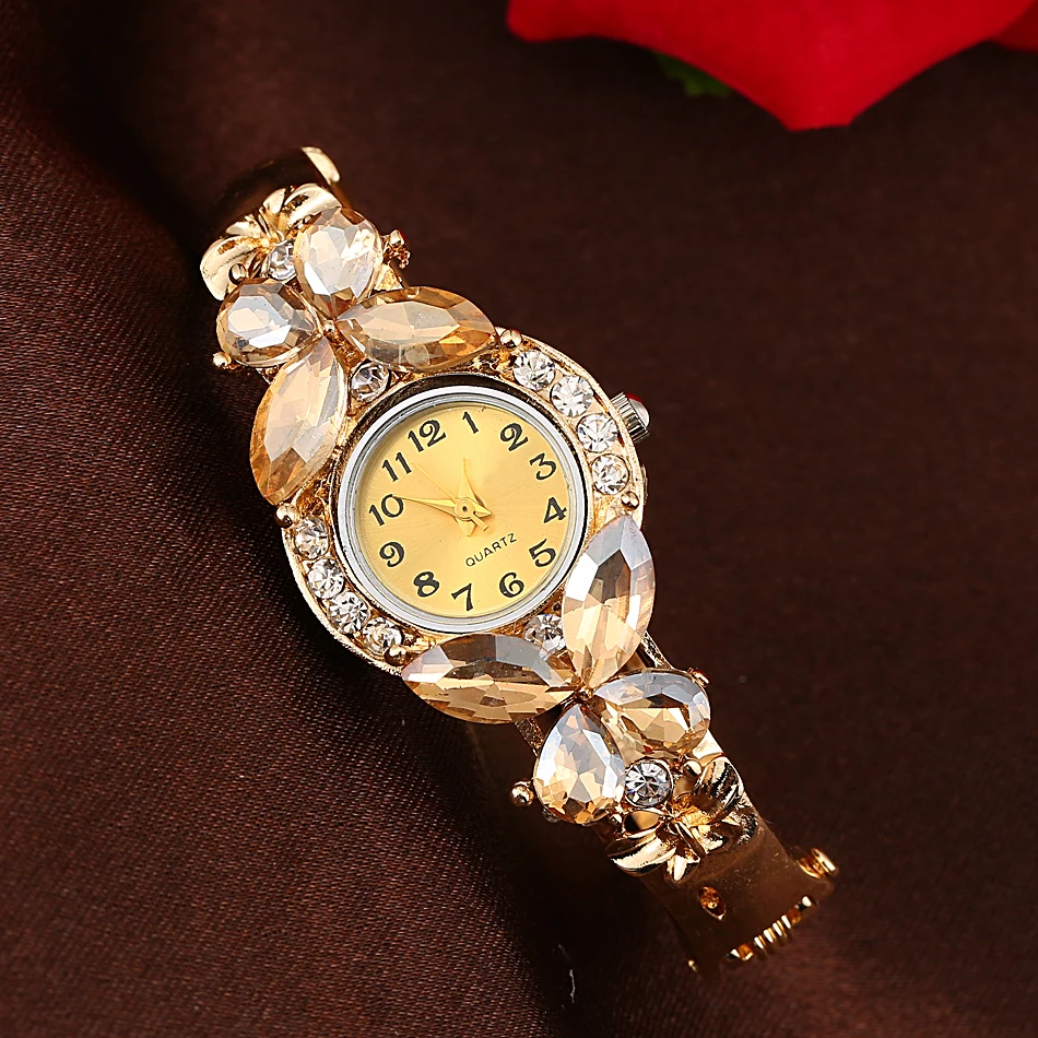 Женские кварцевые часы с браслетом браслет с цветами из кристаллов,...