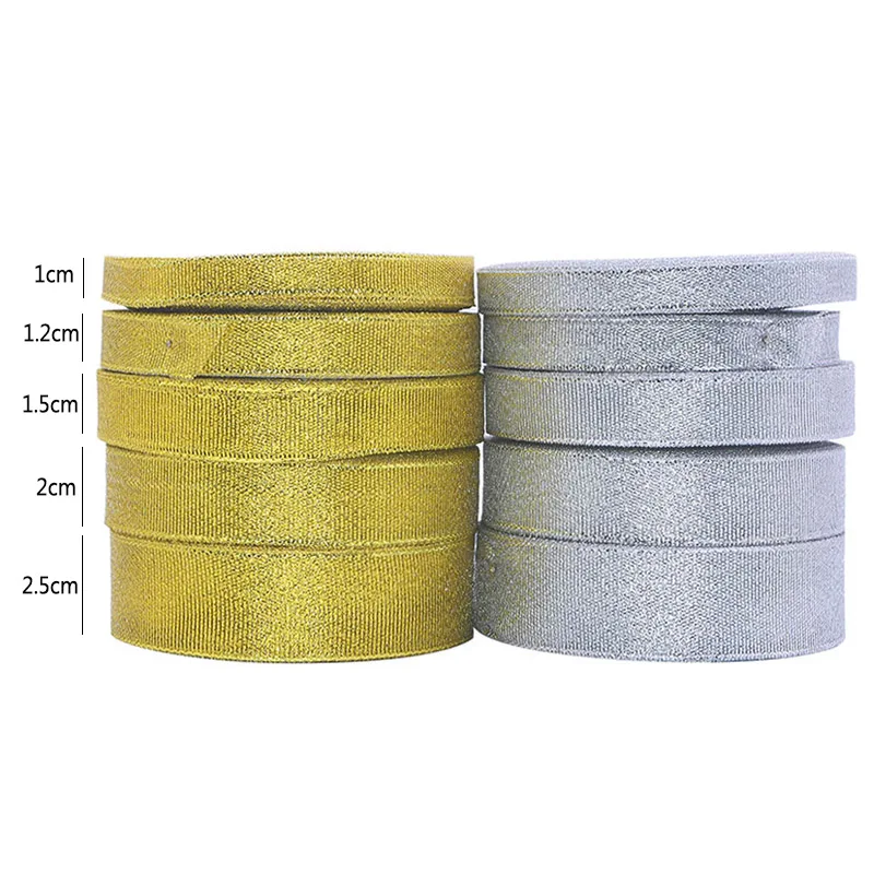 Лента с блестками и вышивкой, 25 ярдов, золото, серебро Шелковый Атласный органза, украшения для самодельного изготовления