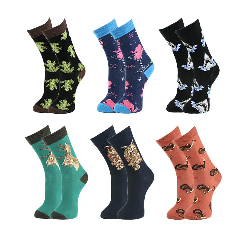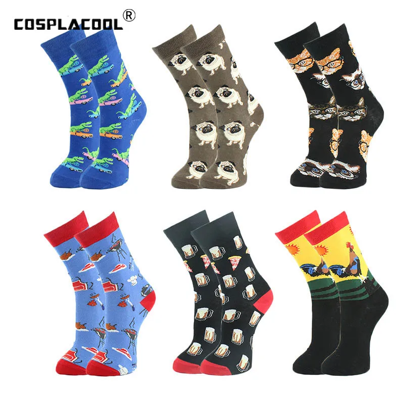 Носки COSPLACOOL Мужские осенне-зимние, оригинальные повседневные уличные носки с забавным рисунком еды с животными, для улицы